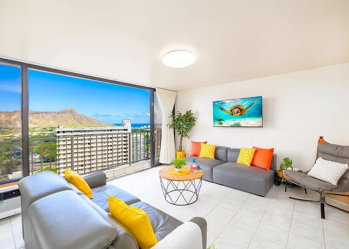 The 56 m^2 Chic Condo Near Waikiki Beach - Free Parking! Honolulu is located in Honolulu, 17 minutes' walk from Upscale shopping, and boasts a hot tub. Featuring a patio with views of the city, the apartment is within a short walking distance of Saint Augustine by-the-Sea Catholic Church.